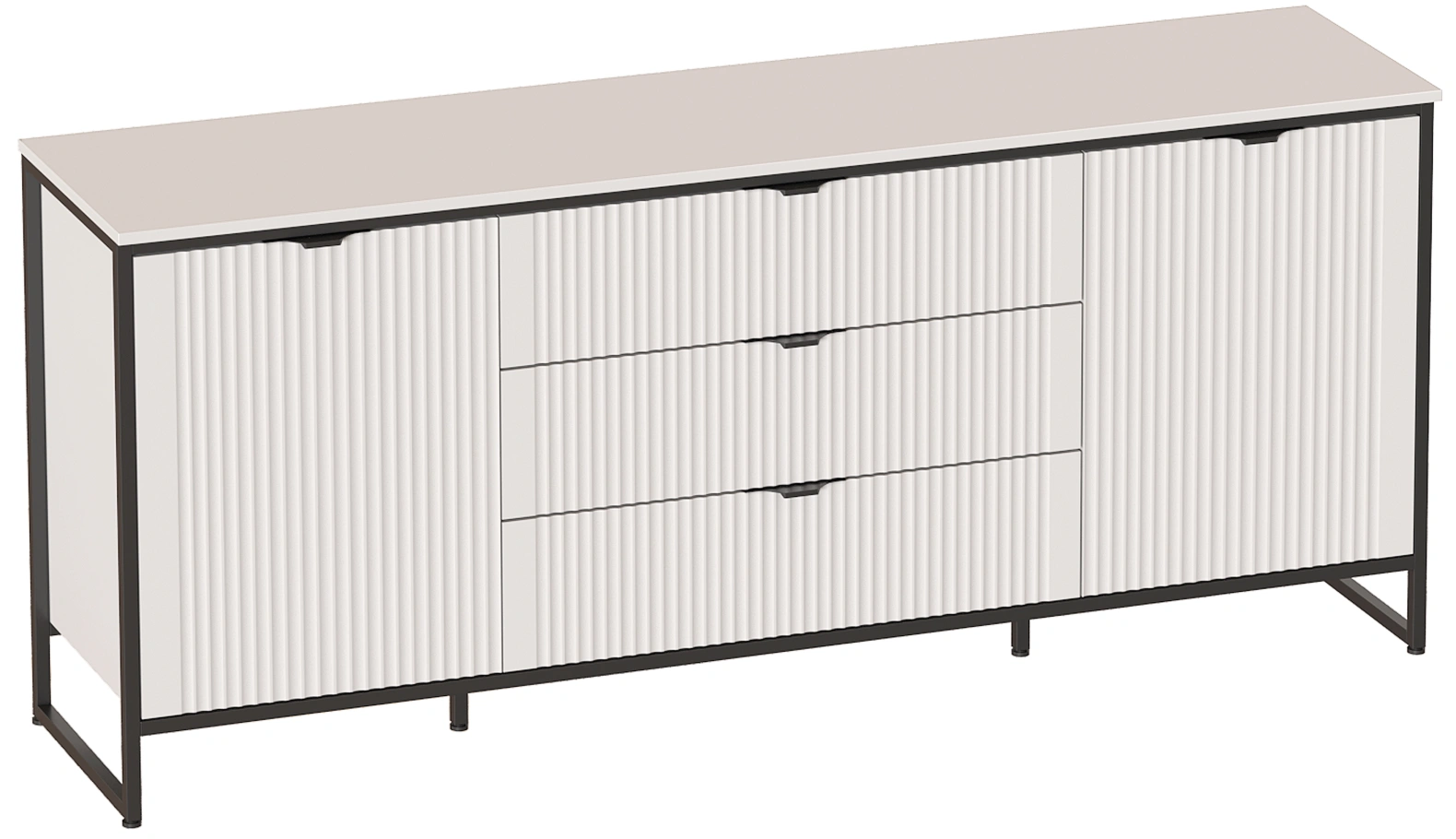 Дизайн коллекции гармонирует со стилем минимализм и лофт. Корпус изделий выполнен из качественного ЛДСП 16 мм, фасады из МДФ 16 мм. Толщина металлических опор - 20 мм.