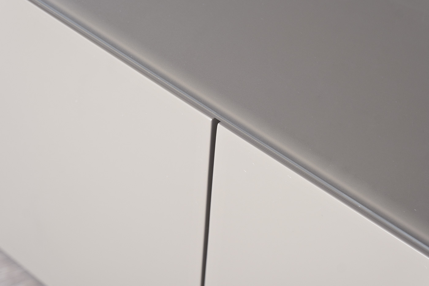 Стильная тумба под телевизор из МДФ, стекла и металла станет изысканным акцентом в современном интерьере. Лаконичный дизайн, основанный на игре фактур и контрасте серого и бронзового цветов, придает модели особый шарм. Тумба под телевизор с выдвижными ящиками — не только стильный, но и практичный предмет интерьера. Вместительные отделения скрывают от посторонних глаз необходимые вещи. Модель органично впишется в обстановку, оформленную в стилистике неоклассики, минимализма или ар-деко.