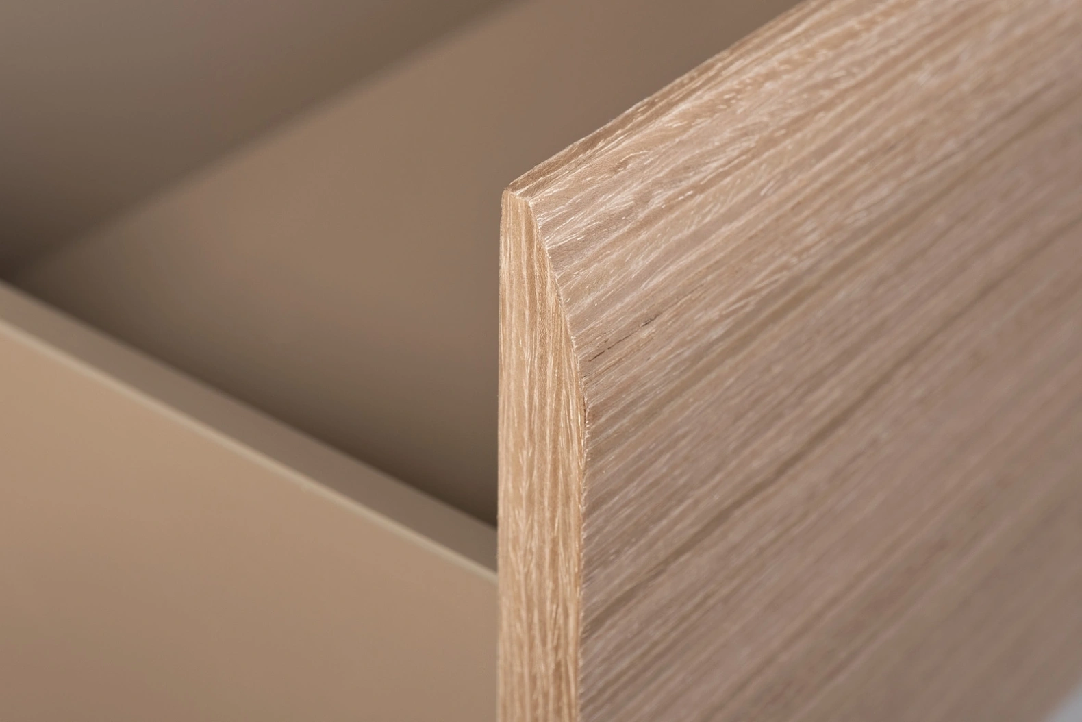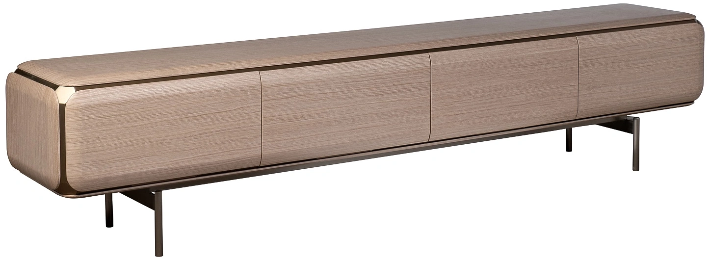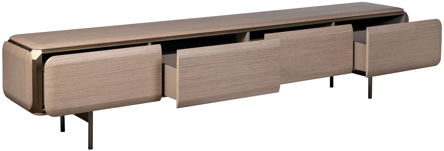 Эта тумба под телевизор — не просто функциональный элемент, а эстетический акцент современной гостиной. Мягкие скруглённые формы, тёплый древесный оттенок и утопленные фасады создают ощущение спокойной ритмики и визуального порядка. Четыре вместительных ящика позволяют скрыть всё лишнее, сохраняя интерьер лаконичным. Телевизионная тумба органично впишется в пространство в минималистичном или скандинавском стиле, а также дополнит интерьер современной классики.