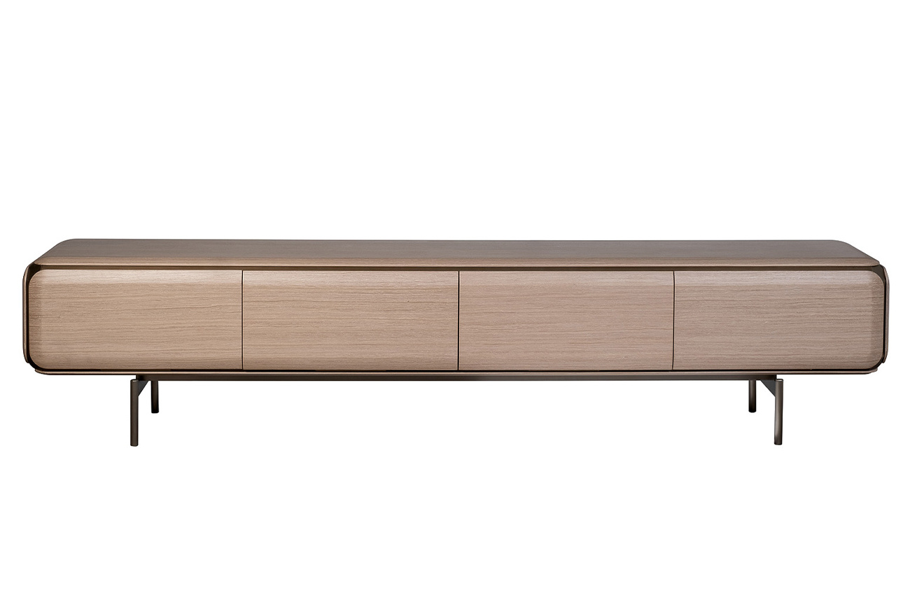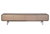 Эта тумба под телевизор — не просто функциональный элемент, а эстетический акцент современной гостиной. Мягкие скруглённые формы, тёплый древесный оттенок и утопленные фасады создают ощущение спокойной ритмики и визуального порядка. Четыре вместительных ящика позволяют скрыть всё лишнее, сохраняя интерьер лаконичным. Телевизионная тумба органично впишется в пространство в минималистичном или скандинавском стиле, а также дополнит интерьер современной классики.