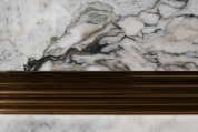 Длинная тумба под телевизор – универсальное решение для современной гостиной или спальни. Данная мебель позволяет организовать функциональную ТВ-зону и удобное хранение домашних вещей. Мраморная столешница тумбы прекрасно справляется с функцией подставки под телевизор и декор. Благодаря светлому оттенку шпона стильная тумба под ТВ прекрасно комбинируется с современной мебелью. Особенность данной модели – металлические опоры, одновременно являющиеся частью фасада. Купить тумбу под телевизор можно с доставкой по РФ, а также дополнить ее любой другой мебелью и декором в модной стилистике ар-деко.Столешница вырезана из натурального мрамора! Рисунок и цвет каждой столешницы индивидуален, неповторим и уникален!