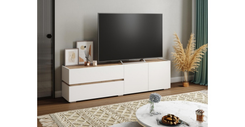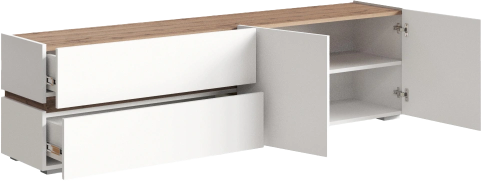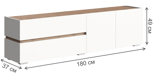 Тумба под ТВ Атлон, с двумя ящиками и полками, белый / дуб вотан