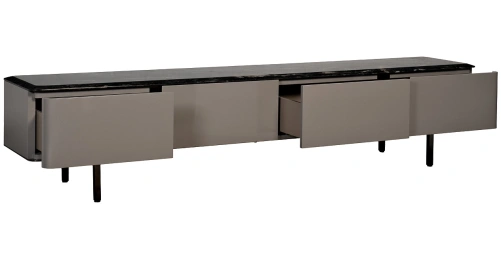 Утонченная тумба под телевизор в современном стиле станет изысканным дополнением элегантной гостиной. Натуральный мрамор, использованный для отделки столешницы, придает модели особый шарм и подчеркивает ее респектабельность. Сдержанный дизайн, основанный на игре фактур и лаконичности форм, позволяет тумбе под телевизор мрамор органично вписаться практически в любой современный интерьер. Вместительные отделения с выдвижными ящиками позволяют хранить необходимые вещи.Столешница вырезана из натурального мрамора! Рисунок и цвет каждой столешницы индивидуален, неповторим и уникален!