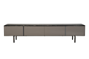Утонченная тумба под телевизор в современном стиле станет изысканным дополнением элегантной гостиной. Натуральный мрамор, использованный для отделки столешницы, придает модели особый шарм и подчеркивает ее респектабельность. Сдержанный дизайн, основанный на игре фактур и лаконичности форм, позволяет тумбе под телевизор мрамор органично вписаться практически в любой современный интерьер. Вместительные отделения с выдвижными ящиками позволяют хранить необходимые вещи.Столешница вырезана из натурального мрамора! Рисунок и цвет каждой столешницы индивидуален, неповторим и уникален!