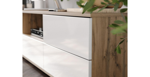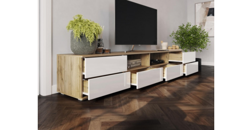 Тумба под ТВ Маллоу, дуб вотан / белый глянец