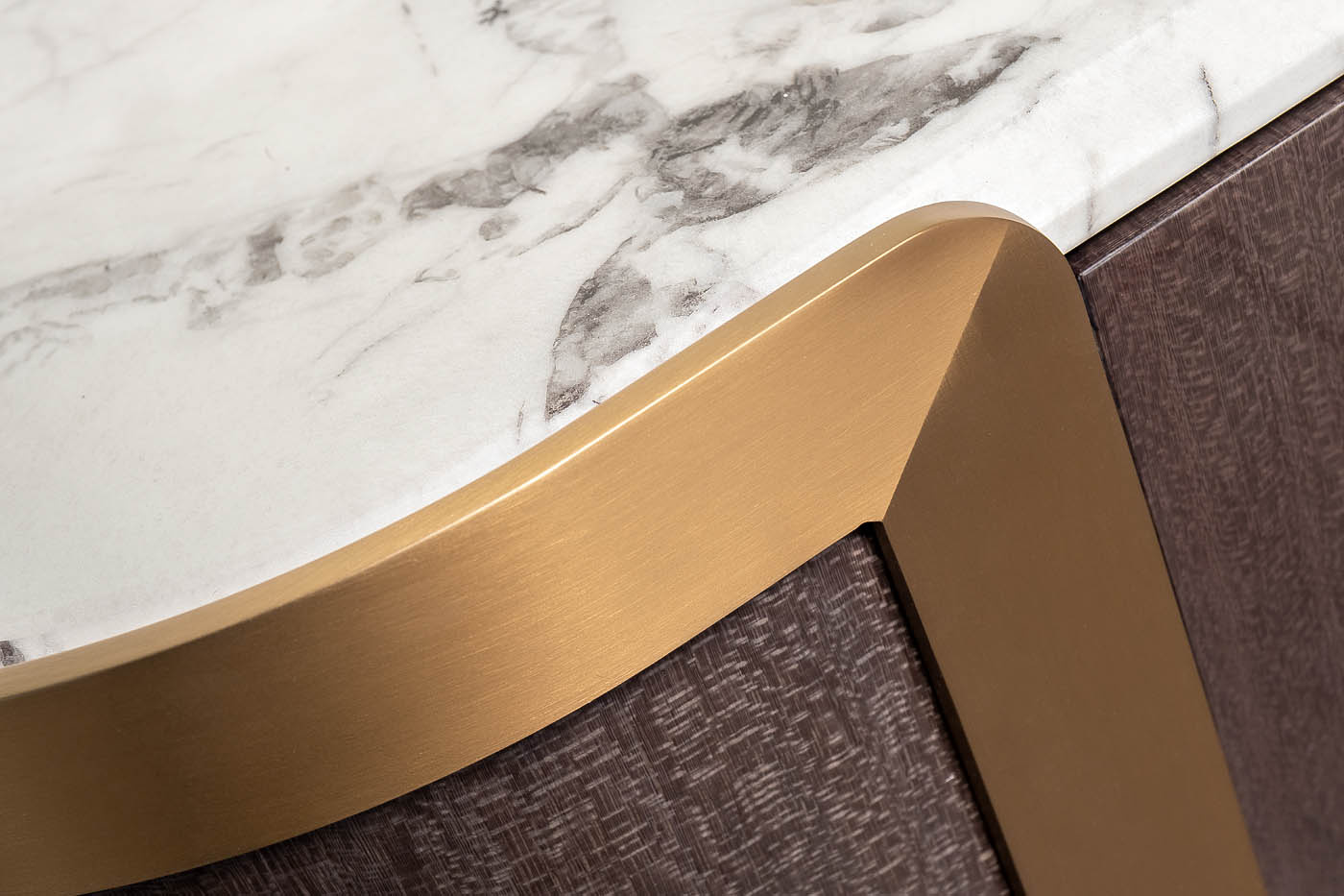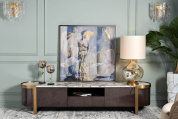 Современная тумба под телевизор из коллекции Sevilla - практичное решение для удобного и лаконичного размещения домашней техники в гостиной или спальне. Длинная тумба в современном стиле разместит на себе современные модели TV и аксессуары к нему. Мебель оснащена специальными ящиками, в которых удобно хранить комплектующие бытовой техники или другие необходимые мелочи. Тумба создана в изысканных дымчато-серых тонах и объединила в себе последние тенденции мебельного дизайна. Отделка выполнена из современных материалов с использованием шпона древесных пород, а столешница имитирует мраморное покрытие, что делает тумбу под телевизор еще более элегантной.