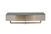 Cуперсовременная тумба под телевизор из мебельной коллекции Space от бельгийского дизайнера Тома Де Вульфа воплощает последние тенденции европейской интерьерной моды. Столешница покрыта закаленным 5мм стеклом. Серый лакированный фасад выполнен из высококачественного МДФ и отделан стальными панелями цвета матовая медь. В тумбе имеется четыре вместительных отделения с выдвижными ящиками. Оригинальная фигурная опора медного цвета заменяет традиционные ножки, обеспечивая устойчивость и безопасность конструкции даже при полной загрузке полок. Все части тумбы выполнены из исключительно качественных материалов по самым современным технологиям.