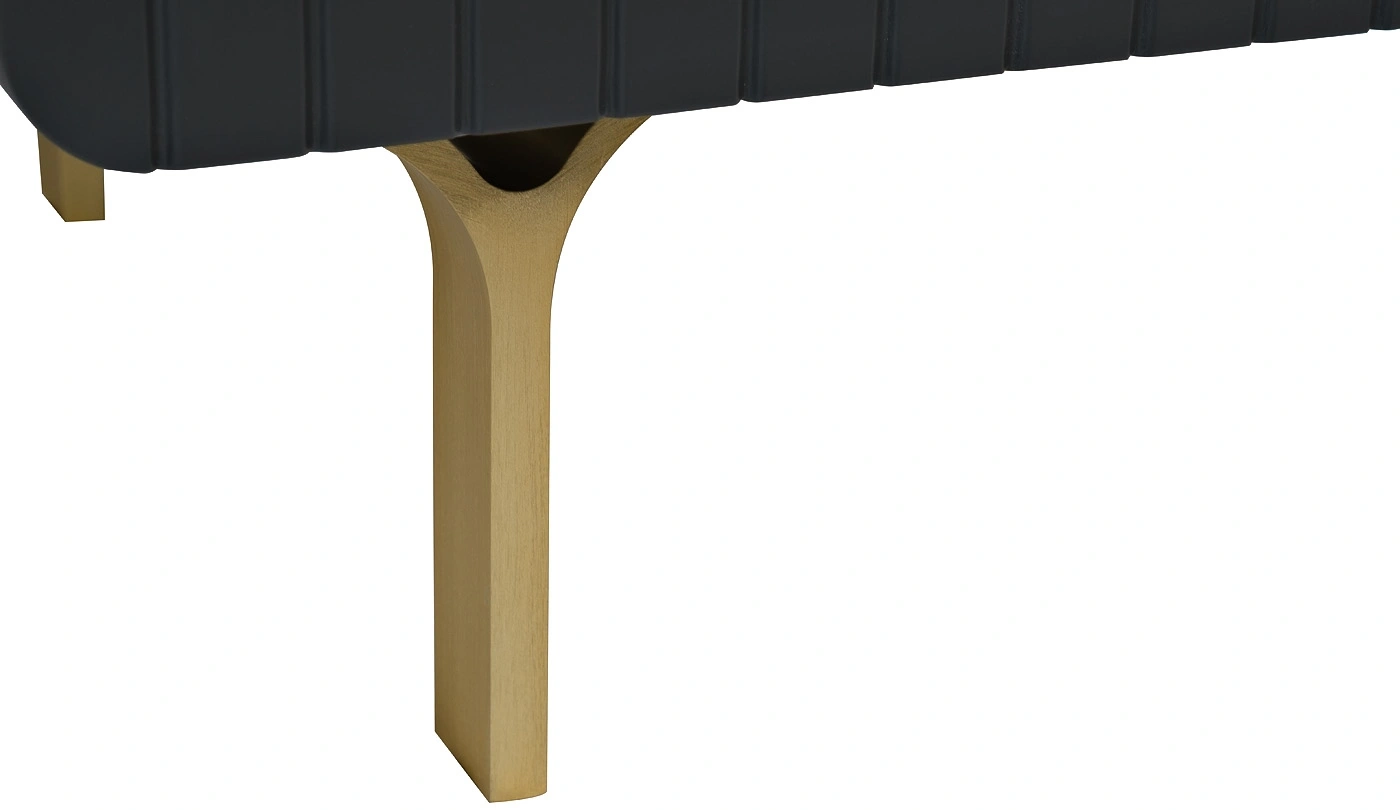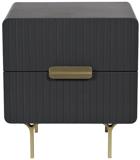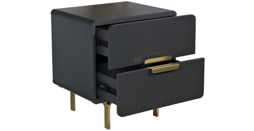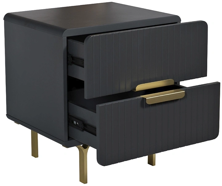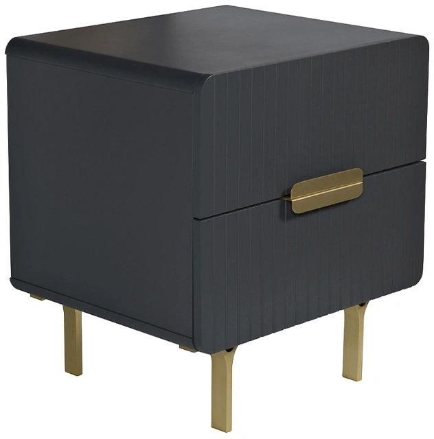Серая тумбочка — стильное решение для оформления современного интерьера гостиной, спальни или кабинета. Модель будет органично смотреться как в большой гостиной, так и в помещении со скромным метражом. Изделие отличается не только презентабельным внешним видом, но и функциональностью, позволяя с максимальной пользой использовать свободное пространство. Тумбочка имеет два выдвижных ящика для хранения вещей. Фасад тумбочки выточен тонкими линиями и декорирован металлическими ручками латунного цвета, что придает ей некой изысканной футуристичности.