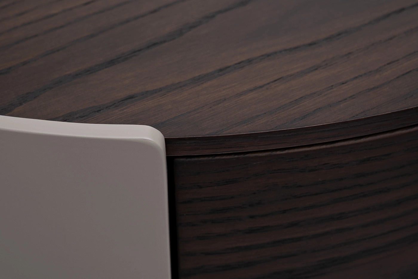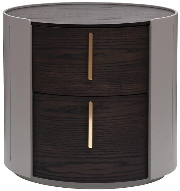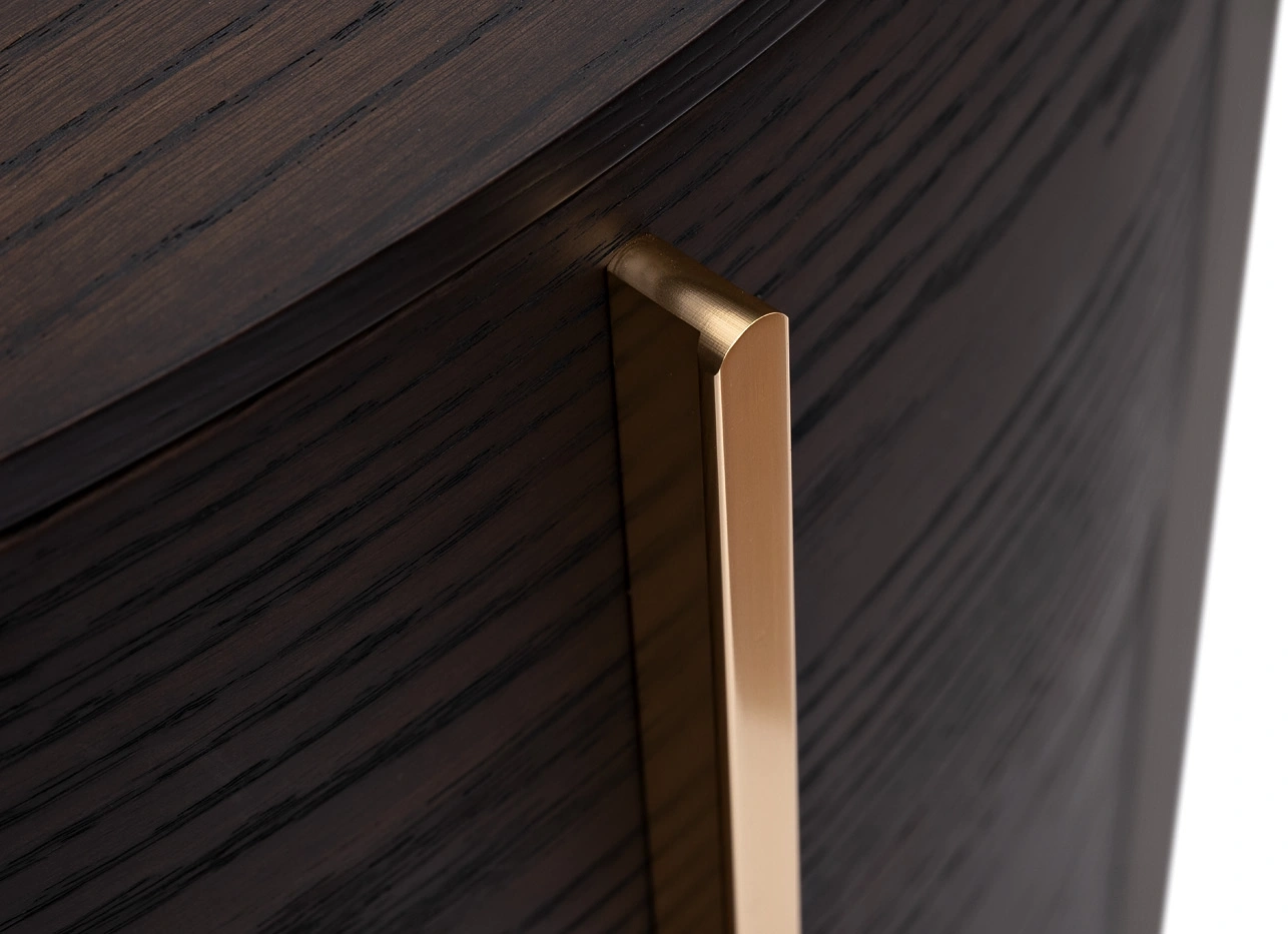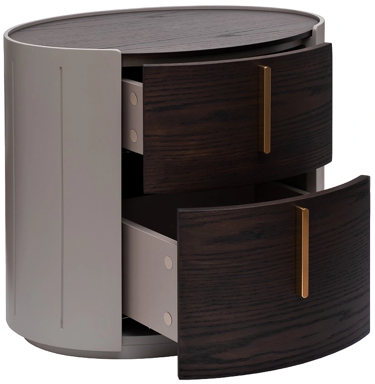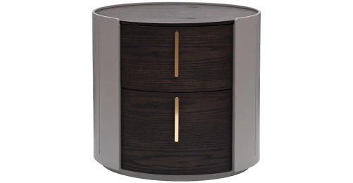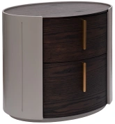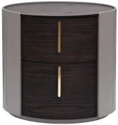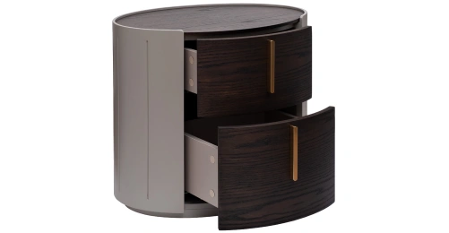 Стильная тумбочка округлой формы станет отличным решением для современного интерьера. Она эффектно впишется в спальню рядом с кроватью и завершит дизайн прихожей. Золотистые лаконичные ручки на ящиках добавляют лоска и роскошества изделию, гармонично сочетаясь с темным шпоном. Тумбочку можно использовать для размещения личных вещей, книг и журналов, вазы с цветами или предметов декора. Два вместительных ящика позволяют спрятать лишние вещи, чтобы разгрузить комнату и поддерживать порядок. Garda Decor предлагает тумбочки в большом ассортименте в стилистике современного ар-деко.