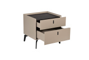 Стильная светлая тумбочка сочетает в себе лаконичный дизайн, простую форму, высокое качество материалов и функциональность. Благодаря вместительности в ней удобно хранить личные вещи, косметику, аксессуары. Прикроватная тумбочка с 2 ящиками органично впишется в интерьер спальни, а также будет уместна в прихожей, холле или гостиной. За счет изящного дизайна она делает обстановку дороже и элегантнее. Для ножек был выбран прочный металл контрастного цвета.