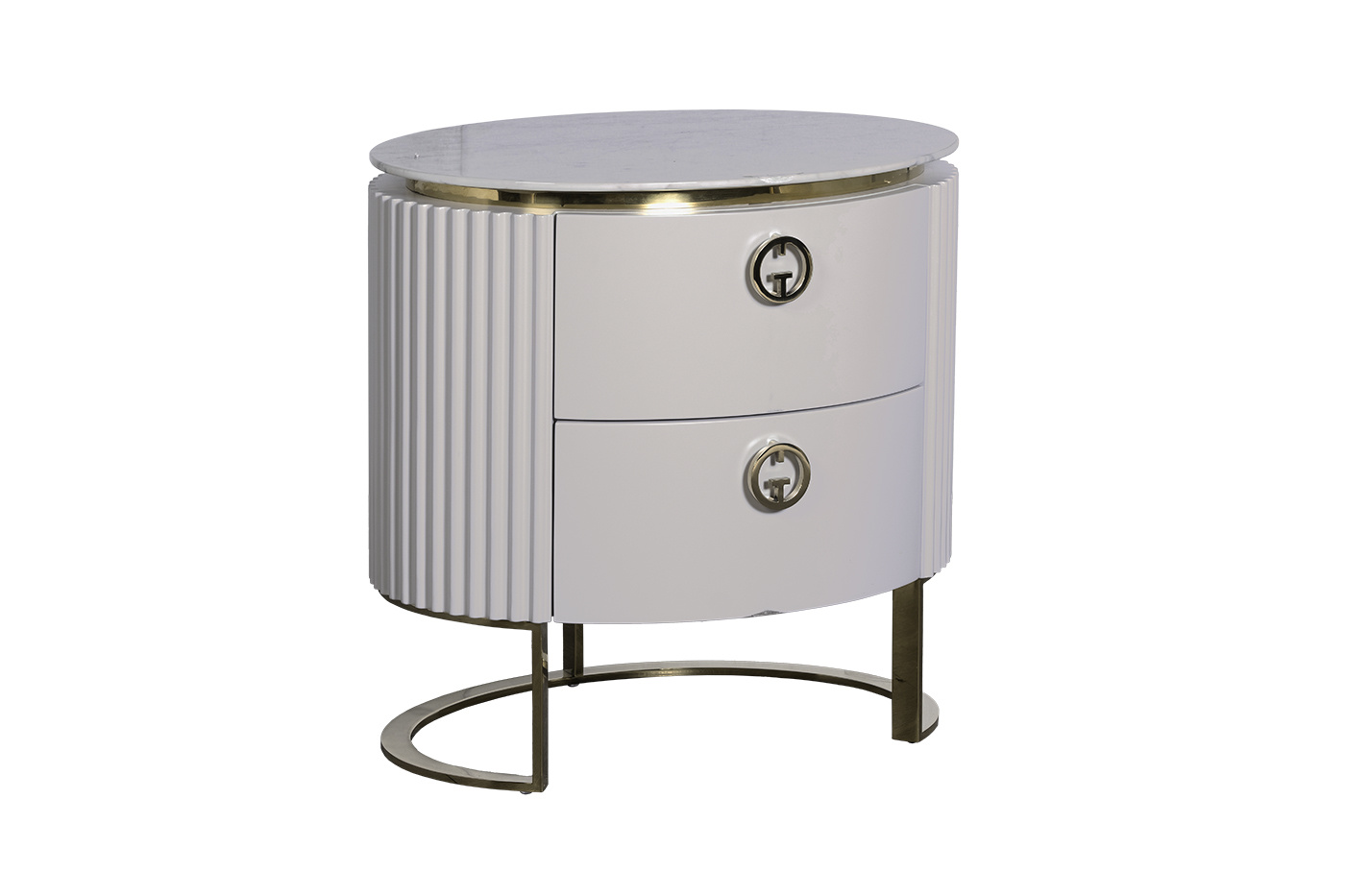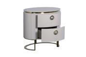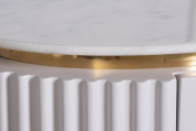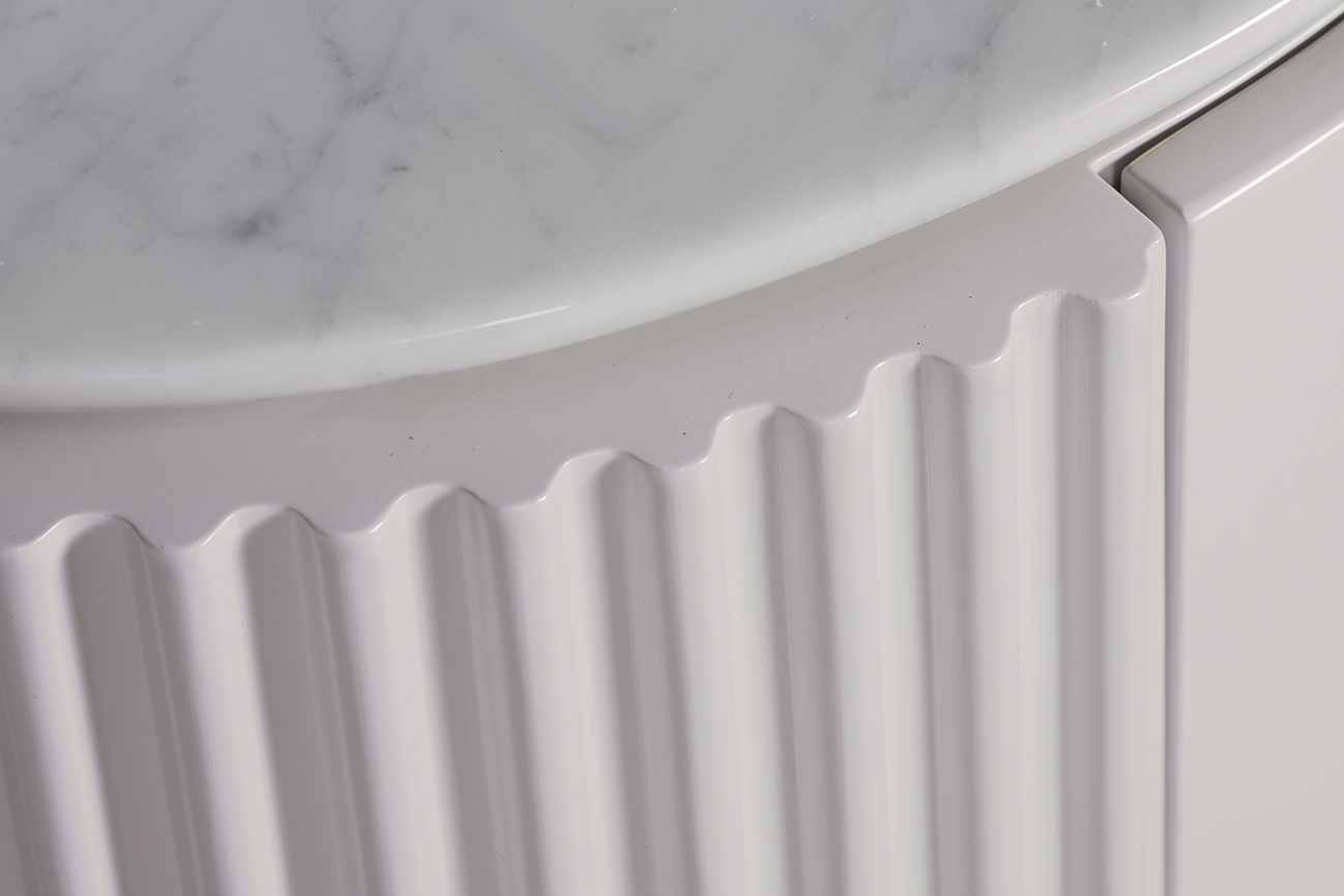 Эффектно завершить дизайн спальни или гостиной поможет тумбочка с мраморной столешницей и вставками из нержавеющей стали под золото. Такая модель отлично смотрится в интерьерах стилей шебби-шик и ар-деко. СВЕТЛО-СЕРЫЙ цвет делает ее универсальным решением, которое можно сочетать как с классической пастельной, так и яркой цветовой палитрой. Прикроватная тумбочка для спальни с оригинальной металлической ножкой в форме полукруга и округлой светло-серой основой наполнит помещение атмосферой уюта и тепла. Выдвижные ящики позволяют спрятать личные вещи и разгрузить комнату. В каталоге со стильной дизайнерской тумбочкой также представлены комод, тумба под телевизор и консоль с мраморной столешницей.