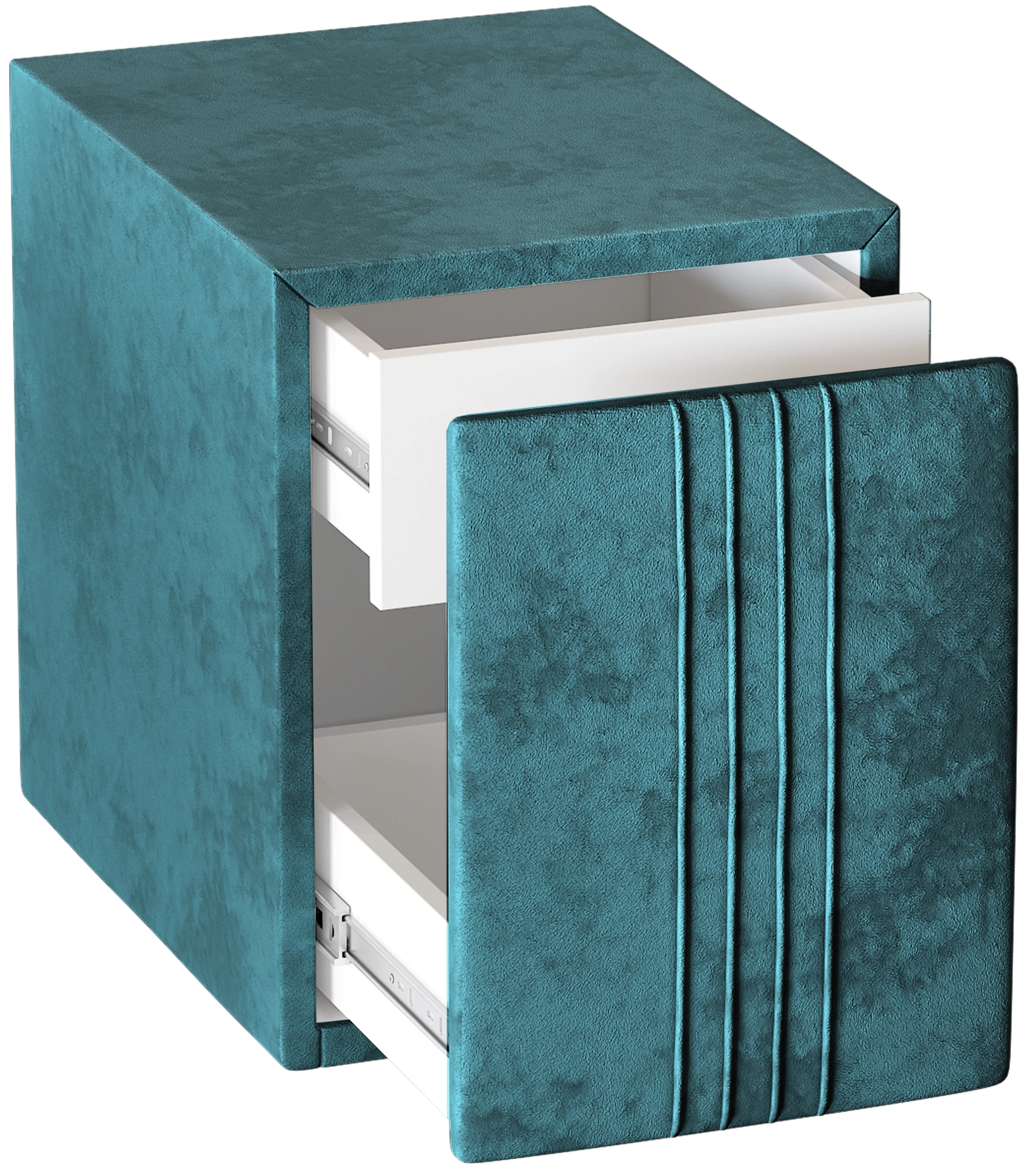 Тумба обтянута высококачественным велюром, имеет два вместительных выдвижных ящика с механизмом push to open. Скругленные торцы модели, минимизируют риск удариться в темноте.