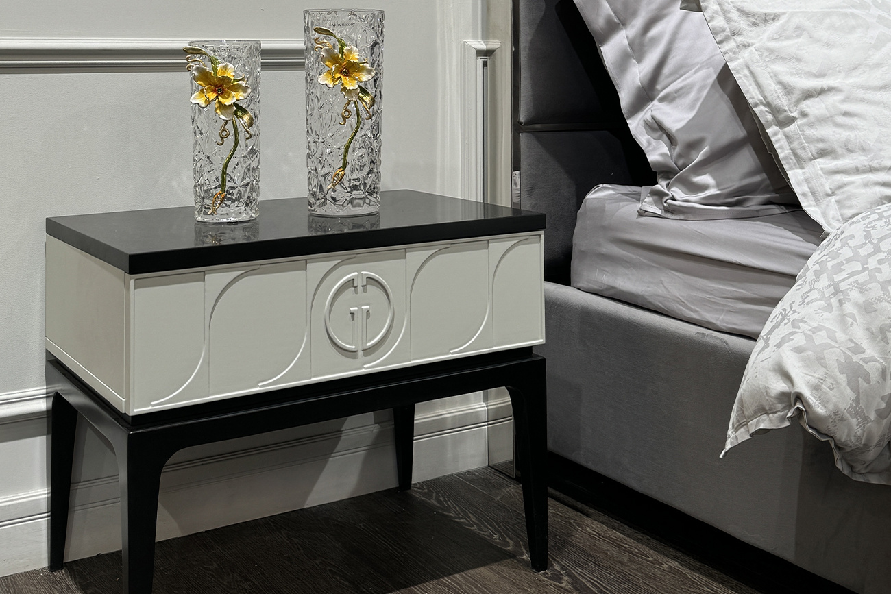 Дизайнерская прикроватная тумбочка Spinola выполнена в стиле арт-деко и воплощает в себе лучшие его характеристики: сполкойные оттенки, симметричные узоры, четкие линии, высококачественные материалы. Разместить можно тумбочку в спальне, гостиной, кабинете, детской комнате. Вместительный скрытый ящик позволит хранить личные вещи, косметику, текстиль. Купить прикроватную тумбочку можно онлайн на сайте, что удобно, выгодно и экономит время. Корпусная мебель коллекции Garda Decor- черно/серая тумба прикроватная SPINOLA с выдвижным ящиком. Габариты:ширина-60см,глубина-40см,высота-50см. RAL 9005/NSC 2002