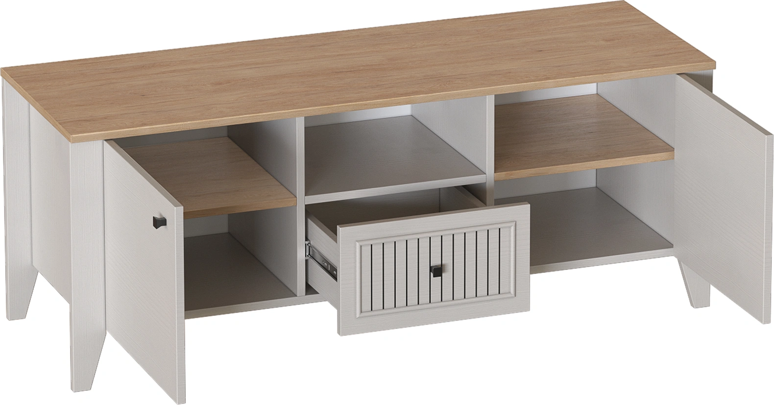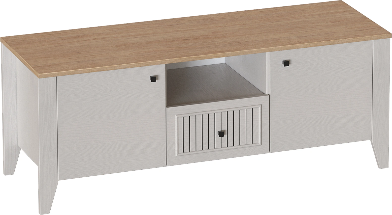 Тумба ТВ Валенсия, узкая, один ящик, персидский жемчуг / дуб натуральный светлый