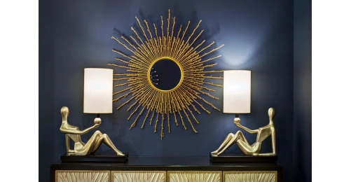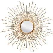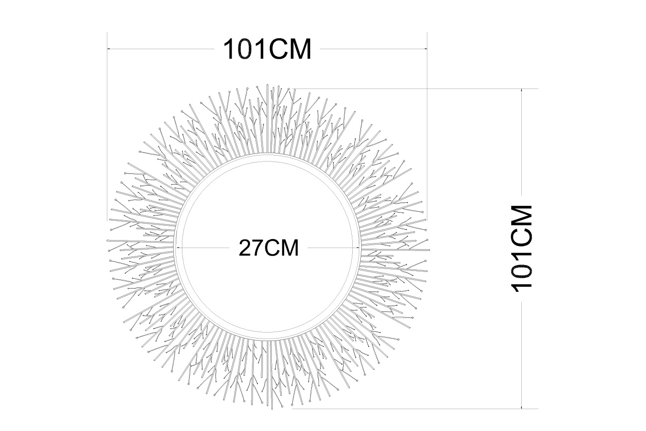 Дизайнерское декоративное зеркало напоминает стилизованный диск древних ацтеков "Камень солнца" - Piedra del Sol, датированный II тысячелением до н.э. - древнейший памятник ацтекской космогонической культуры. В центре "Камня солнца" находилось изображение древнего бога солнца, от которого расходились многочисленные лучи, символизирующие время. Piedra del Sol символизировал непрерывность солнечного цикла и божественное происхождение жизни на земле; есть предположение, что "Камень Солнца" служил ацтекам древнейшим календарем, а также солнечными часами. Декоративное зеркало с лучами-веточками принесет в ваш дом сияние солнечного света, наполнит его красотой и гармонией.