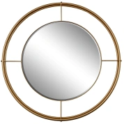 Оригинальное зеркало в золотой раме легко справится с декоративной функцией и будет стильным акцентом в любом современном интерьере. За счет лаконичного дизайна оно органично впишется в обстановку ар-деко, минимализм, фьюжн, современная классика. Дизайнерское зеркало в металлической раме выглядит легким и воздушным. Это полноценный арт-объект, который будет красиво смотреться в компании картин, панно, постеров и другого настенного декора. Круглое зеркало в комнате создает ощущение легкости, добавляет обстановке аристократизма и изящества.