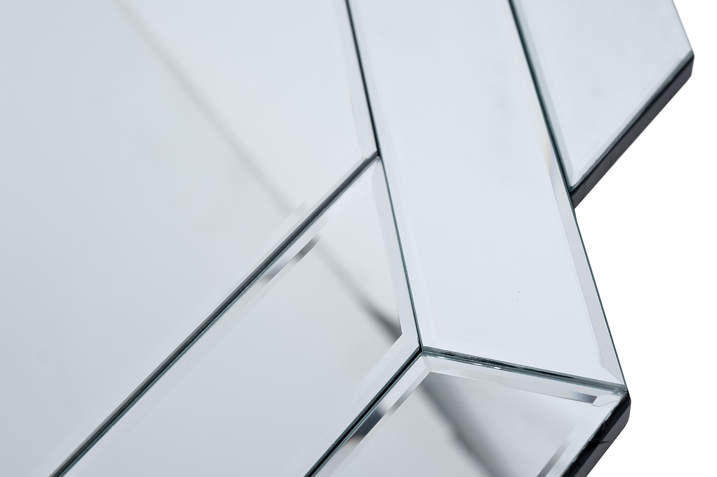 Стильное зеркало в геометрической форме выполнено из стеклянных элементов, переплетающихся друг с другом. Форма зеркала с восьмигранной рамой выглядит оригинально и красиво. Модель сможет придать интерьеру гостиной, спальни и холла особого стиля и зрительно увеличить площадь помещения.