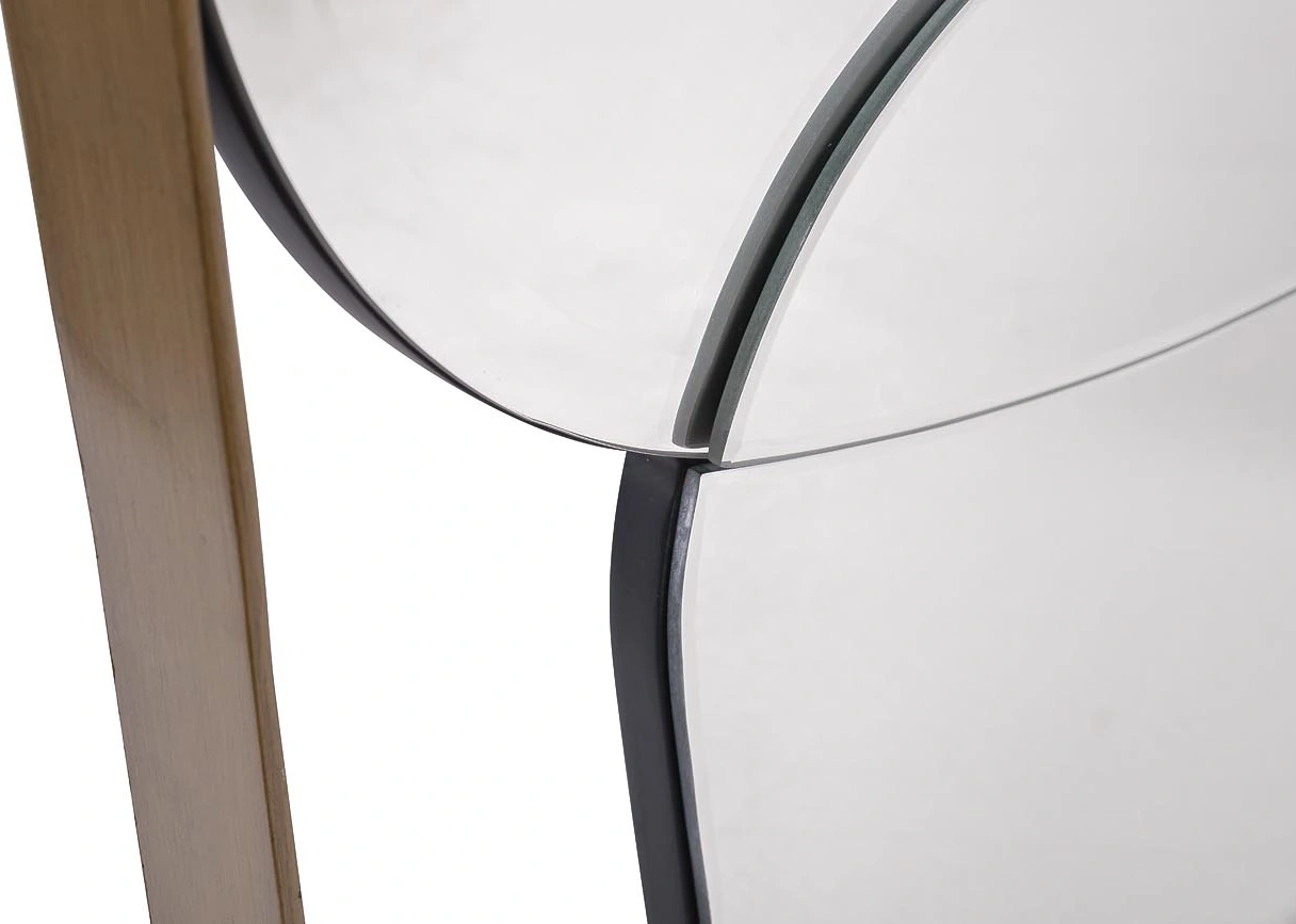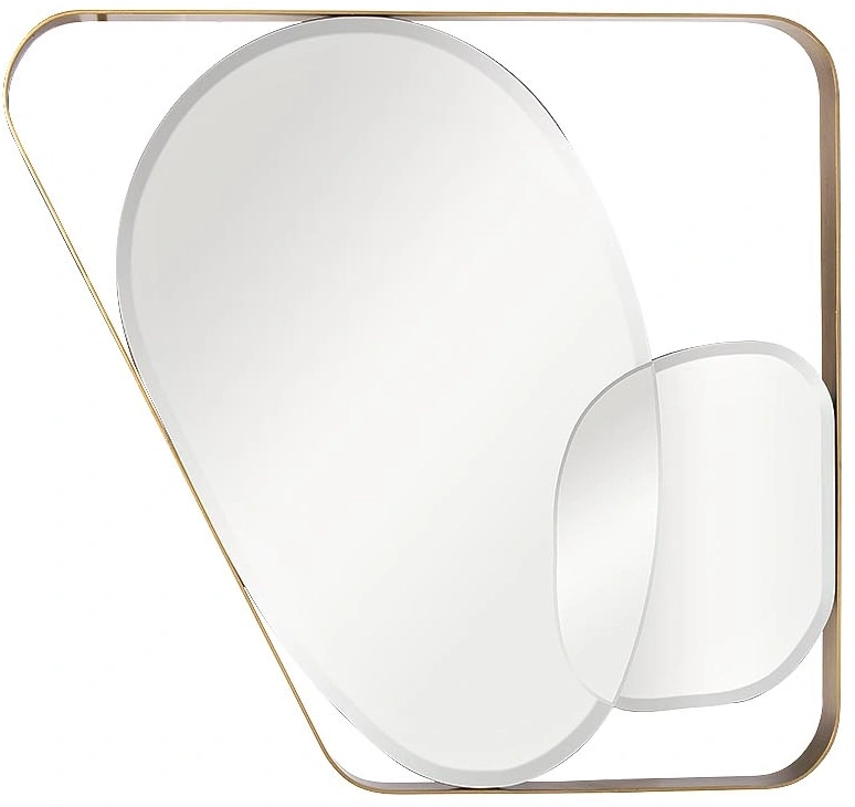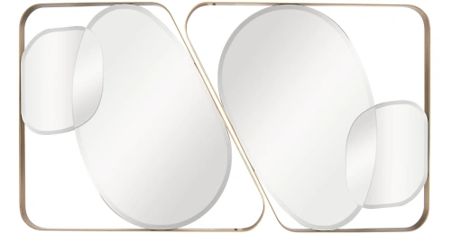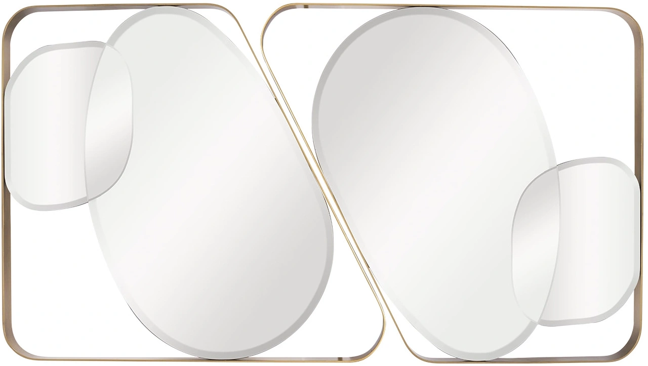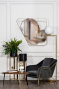 Дизайнерское ассиметричное зеркало в золотой оправе украсит интерьер в современном стиле или стиле ар-деко. Два зеркала, развернутые на 180 градусов по отношению друг к другу, составят необычное и изысканное панно.