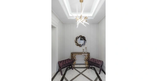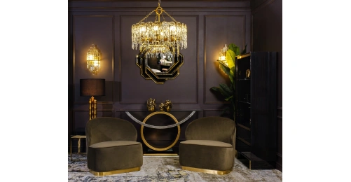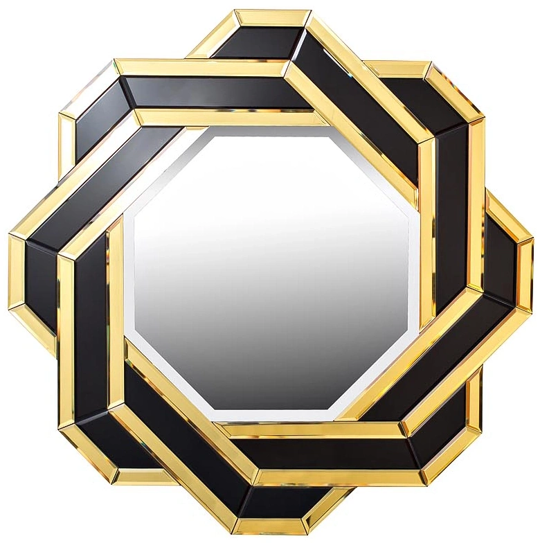 Оригинальное зеркало KFE7H018 в роскошной раме из черно-золотых зеркальных полос, сплетающихся в геометрический рисунок, подойдет натурам страстным и неординарным. Такое зеркало прекрасно впишется в стильный и яркий интерьер дома - под стать неординарному владельцу.