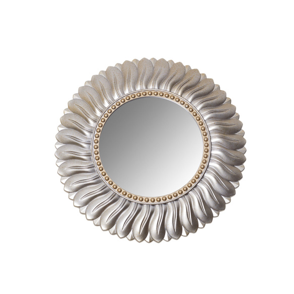 Идеальным украшением комнаты может стать круглое декоративное зеркало, которое действительно напоминает какую-то драгоценность или маленькую жемчужину. Идеально впишется круглое зеркало на стену столовой или гостиной, подчеркнув изысканный вкус хозяев дома и уровень роскоши. Несмотря на то, что зеркало выполнено из пластика и стекла, оно идеально в качестве декоративного элемента, который привлекает внимание и смотрится весьма впечатляюще. Десятки маленьких бусинок по кругу, небольшое золотистое напыление и рамка в виде лепестков делают этот элемент интерьера очень привлекательным. Это круглое зеркало точно не останется без внимания и восхищений окружающих.