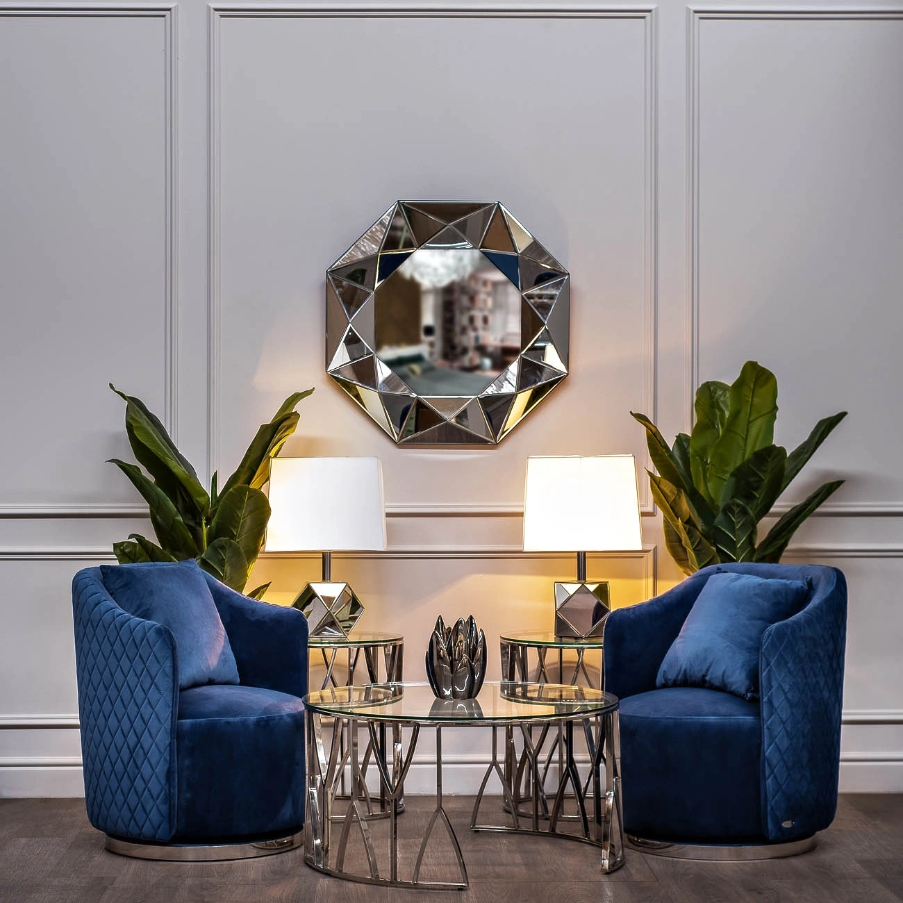 Роскошный журнальный хромированный стол в стиле ар-деко – гармоничное сочетание стеклянной столешницы и устойчивого металлического основания с хромированным блеском. Оригинальная форма опоры – главная фишка этой модели. За счет нее дизайнерский журнальный стол в интерьере смотрится эффектно и дорого. Он прекрасно впишется в пространство современной гостиной, спальни, кабинета или лаунж-зоны. Может взять на себя функции сервировочного столика или главного декоративного акцента в интерьере.