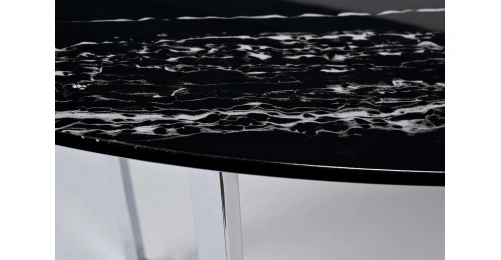 Лаконичная современная модель журнального стола станет центральным украшением вашей гостиной. Столешница мебели выполнена из качественного МДФ с полимерным покрытием для защиты от влаги и царапин. Она представлена в черно-белом оттенке с имитацией под мрамор. Ее красиво дополняют оригинальные ножки из нержавеющей стали в оттенке хром. Модель отличается стандартными размерами, поэтому ее можно располагать в гостиных средней и большой площади. А тонкие ножки оставляют много свободного пространства, визуально расширяя помещение. Приобретайте овальный журнальный столик на сайте Garda Decor, чтобы придать дому уюта, комфорта и уникального стиля. Толщина столешницы - 20мм.