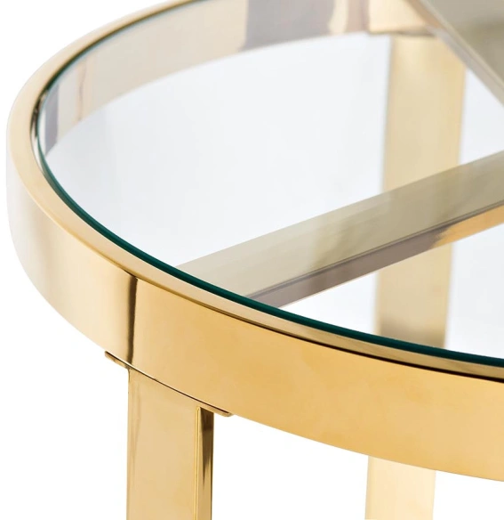 Круглый журнальный столик данной модели привлекателен не только декоративными характеристиками, но и повышенной функциональностью. Несмотря на компактные размеры, с его помощью можно решить множество задач: расположить на его поверхности интерьерные украшения, оперативно организовать небольшое чаепитие или просто использовать его в качестве дополнения к интерьеру. Журнальный столик золотого цвета - это оригинальные ножки и круглая столешница из стекла, сочетание которых не перегружает пространство и кажется невесомым, не имеющим четких очертаний. Купить журнальный столик со стеклом следует уже для того, чтобы привнести изюминку в интерьер, создавая необычные интерьерные композиции. Толщина столешницы - 8мм.