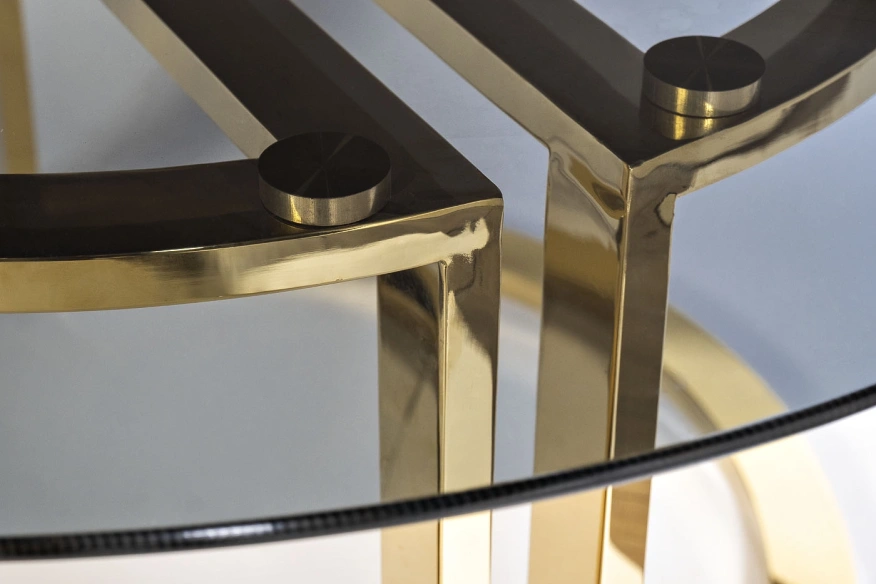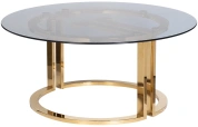 Изысканный журнальный стол в стиле ар-деко - творение дизайнеров Garda Design Studio. Оригинальная опора-подстолье из полированной стали цвета золота, выполненная в форме литер GD - Garda Decor, просвечивает сквозь столешницу из тонированного закаленного стекла. Стильный и роскошный столик украсит вашу гостиную или спальную комнату. Кофе или шампанское, сервированные на таком столике, покажутся особенно вкусными и необыкновенными, а обстановка - богемной. Толщина столешницы - 8мм.