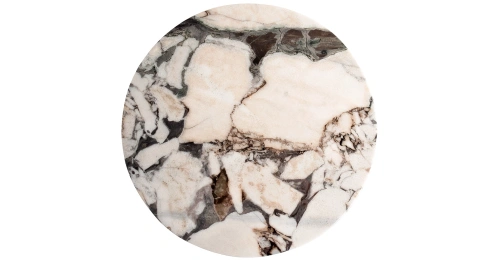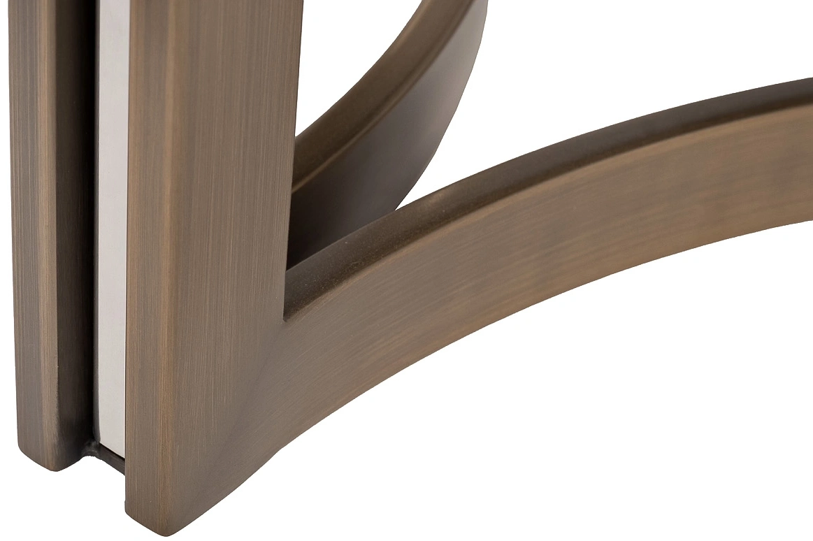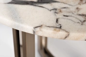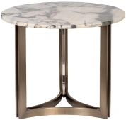 Изысканный журнальный столик с круглой столешницей, выполненной из натурального мрамора светлых оттенков, станет украшением гостиной или холла, оформленного в стиле ар-деко. Уникальный рисунок натурального камня, подобранный искусным мастером, притягивает взгляд игрой цвета и света, превращая этот предмет мебели в настоящее произведение искусства. Оригинальное основание цвета античной бронзы, выполненное из металла, создает ощущение легкости и придает изделию утонченный вид.Столешница вырезана из натурального мрамора! Рисунок и цвет каждой столешницы индивидуален, неповторим и уникален!