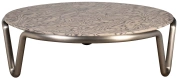 Этот круглый кофейный стол представляет собой не просто предмет мебели, а скульптурный элемент, способный тонко преобразить атмосферу любого пространства. Его столешница из натурального шпона с гипнотическим рисунком прожилок в духе Соттсасса создает ощущение теплоты и природного артистизма. Изящное, плавно изогнутое металлическое основание вторит округлым линиям верха, подчеркивая органичные формы и придавая всей конструкции визуальную лёгкость. Размещённый в гостиной, этот стол станет центром притяжения для взгляда, не доминируя, но уверенно заявляя о своем присутствии. Его низкий профиль идеально подходит для современных интерьеров, где ценятся открытость, простор и непринужденная элегантность. Игра света на текстурной поверхности шпона и блестящем металле добавит динамики, превращая функциональный предмет в постоянно меняющийся арт-объект.