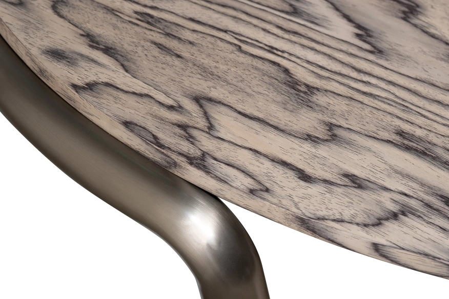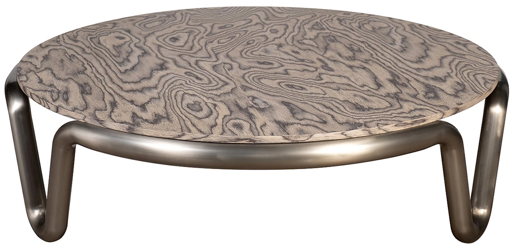 Задайте тон своему пространству с этим круглым журнальным столом. Его столешница, украшенная богатым узором натурального шпона, который смело отсылает к графичности в духе Соттсасса, живет своей собственной историей, притягивая взгляд и прикосновение. Под ней — изогнутая стальная основа, чьи плавные линии создают визуальный танец, сочетающий прочность с изяществом. Это не просто предмет мебели, а выверенная композиция для интерьеров, ценящих артистизм и функциональность. Расположенный в центре гостиной, этот дизайнерский столик станет молчаливым спутником уютных вечеров и оживленных бесед. Его низкий силуэт и обтекаемые формы способствуют созданию атмосферы непринужденной элегантности, не перегружая визуальное восприятие, а, напротив, добавляя ему легкости и индивидуальности.