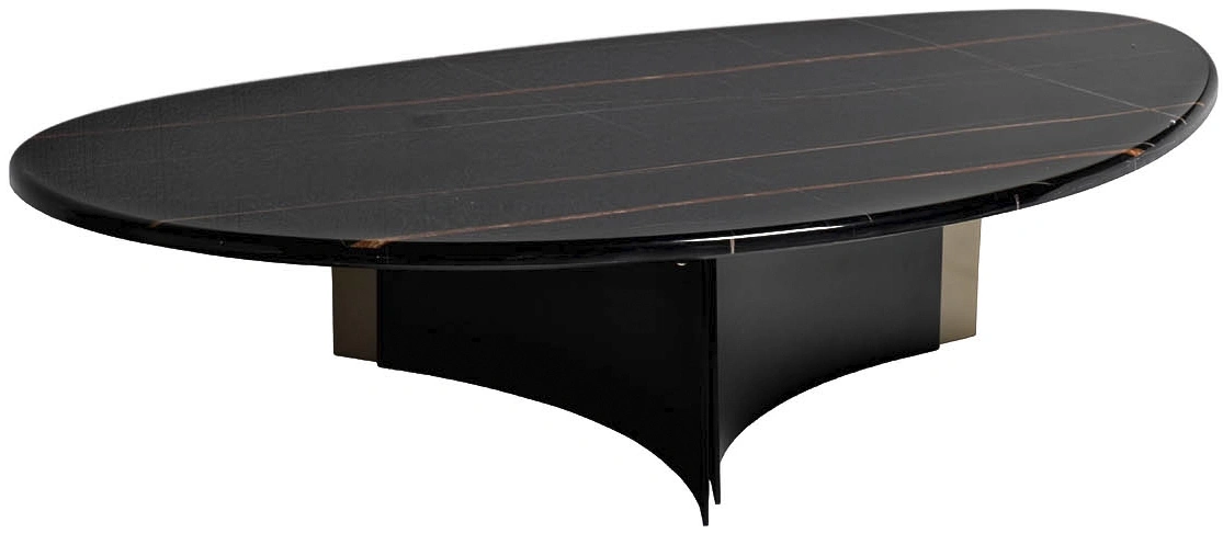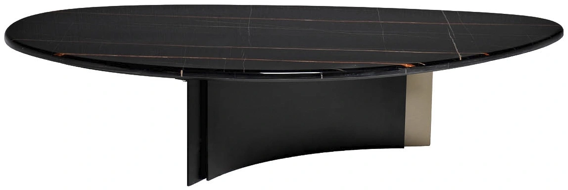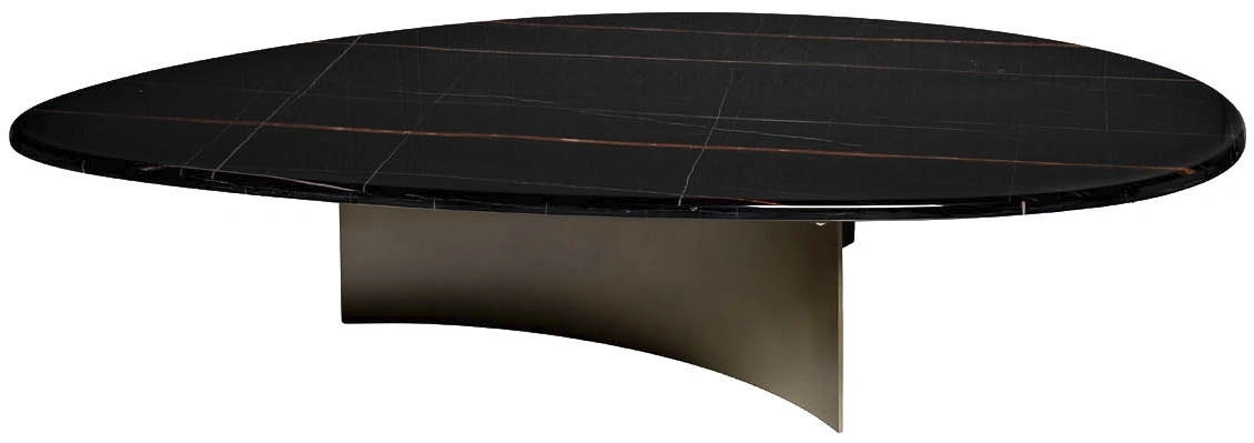 Дизайнерский журнальный стол в современном стиле – эксклюзивная мебель, которая добавляет обстановке гостиной особенного изящества, подчеркивает статус интерьера. Столешница из МДФ с имитацией под мрамор является главной фишкой этой мебели. За устойчивость и визуальную легкость отвечает основание из металла с эффектом черного зеркала. Журнальный черный стол эффектно смотрится в интерьерах ар-деко, фьюжн, авангард, неоклассика, минимализм, сочетается с диваном, креслами и другими предметами современной обстановки. Низкий журнальный стол – стильный современный тренд, дизайнерское решение для вашей обстановки.