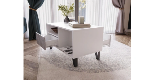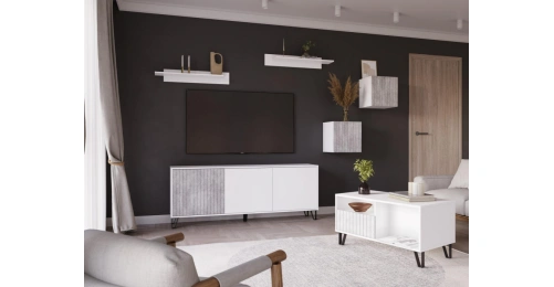 Журнальный стол Эннис, ЛДСП, белый, бетон светлый, каркас черный