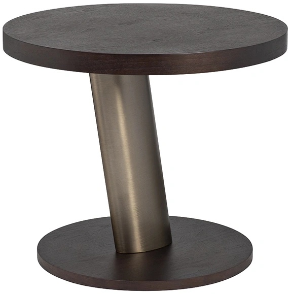 Журнальный столик KONG — выразительное продолжение дизайнерской коллекции бельгийского дизайнера Тома Де Вульфа, в которой каждая деталь продумана до совершенства. Минималистичный журнальный стол из шпона ореха — воплощение сдержанной роскоши. Его монолитная латунная ножка с матовой шлифованной поверхностью придаёт конструкции скульптурную выразительность и устойчивость. Шпонированная круглая столешница из темного ореха контрастирует с металлическим основанием, создавая баланс тепла и строгости. Эта дизайнерская мебель для гостиной безупречно дополнит интерьер с акцентом на стиль контемпорариили или нео-арт-деко.