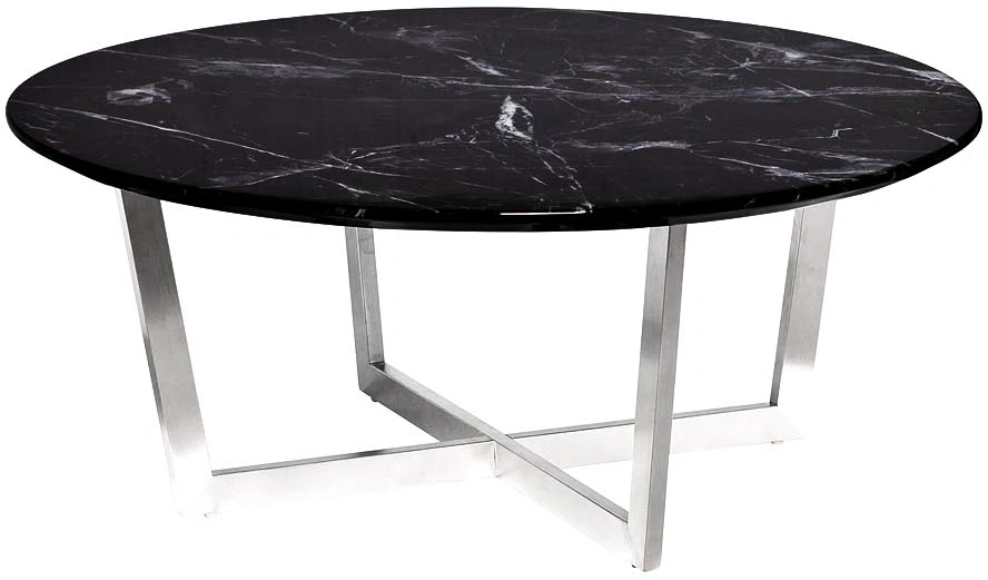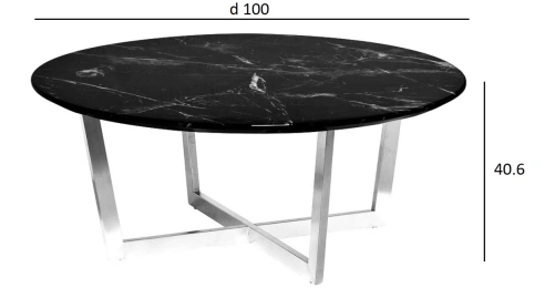 Благородную красоту журнального стола Nero 33FS-CT2029BS со столешницей из МДФ с мраморным принтом черного цвета с белыми прожилками и основанием из нержавеющей стали цвета матовый хром оценят люди с тонким художественным вкусом. Элегантный дизайн и превосходное качество столика помогут ему органично вписаться как в интерьер кабинета, так и в будуар или гостиную. Толщина столешницы - 25мм.