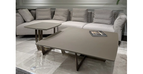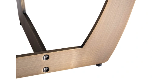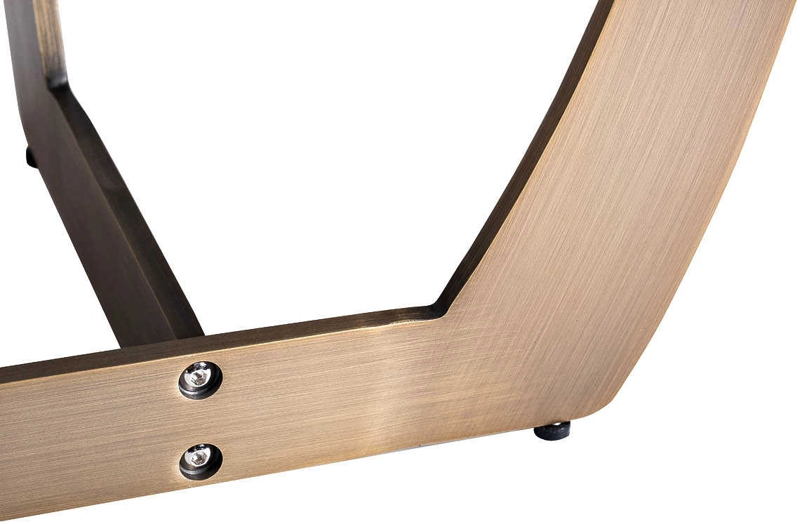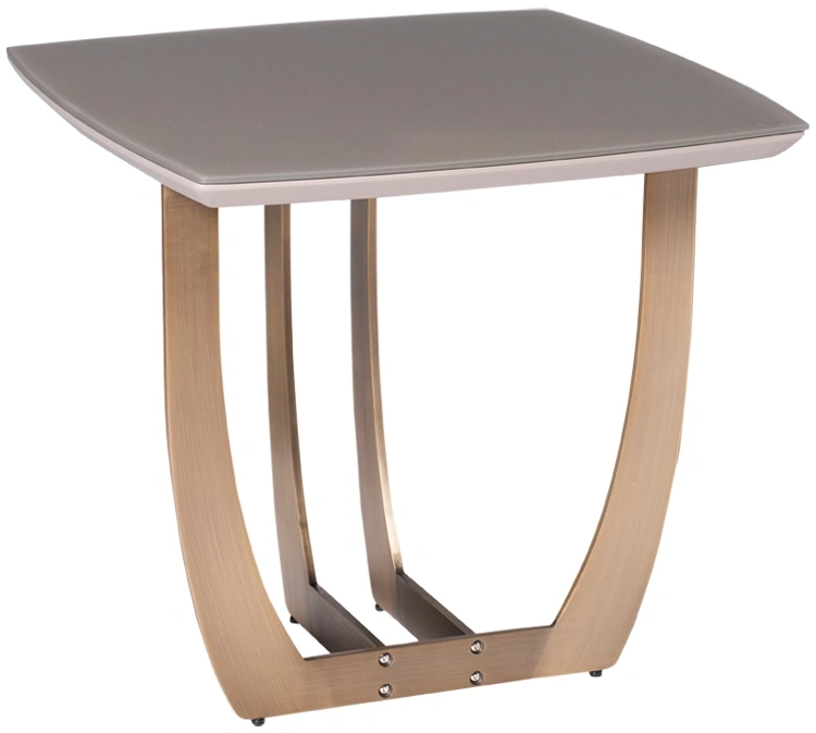 Cуперсовременный журнальный стол из мебельной коллекции Space от ведущего бельгийского дизайнера Тома Де Вульфа воплощает последние тенденции европейской интерьерной моды. Столешница из серого МДФ покрыта закаленным 5мм стеклом, обработанным по уникальной технологии, в результате которой поверхность приобретает гладкую и бархатистую фактуру, будто обкатанную морем. Оригинальная фигурная опора медного цвета заменяет традиционные ножки, обеспечивая устойчивость и безопасность конструкции. Все части стола выполнены из исключительно качественных материалов по самым современным технологиям.