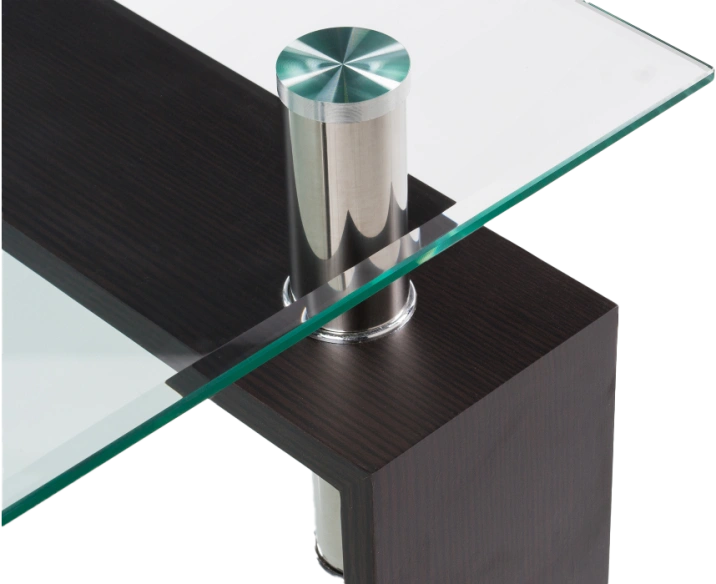 Особенностью этого журнального столика является наличие полки под столешницей из матового стекла. Эта полка предоставляет дополнительное место для хранения книг, журналов, пультов и других мелких предметов. Она также придает столику дополнительный дизайнерский акцент.