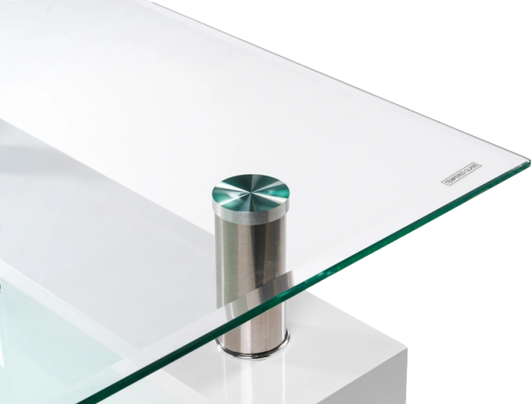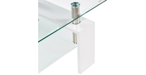 Особенностью этого журнального столика является наличие полки под столешницей из матового стекла. Эта полка предоставляет дополнительное место для хранения книг, журналов, пультов и других мелких предметов. Она также придает столику дополнительный дизайнерский акцент.