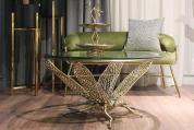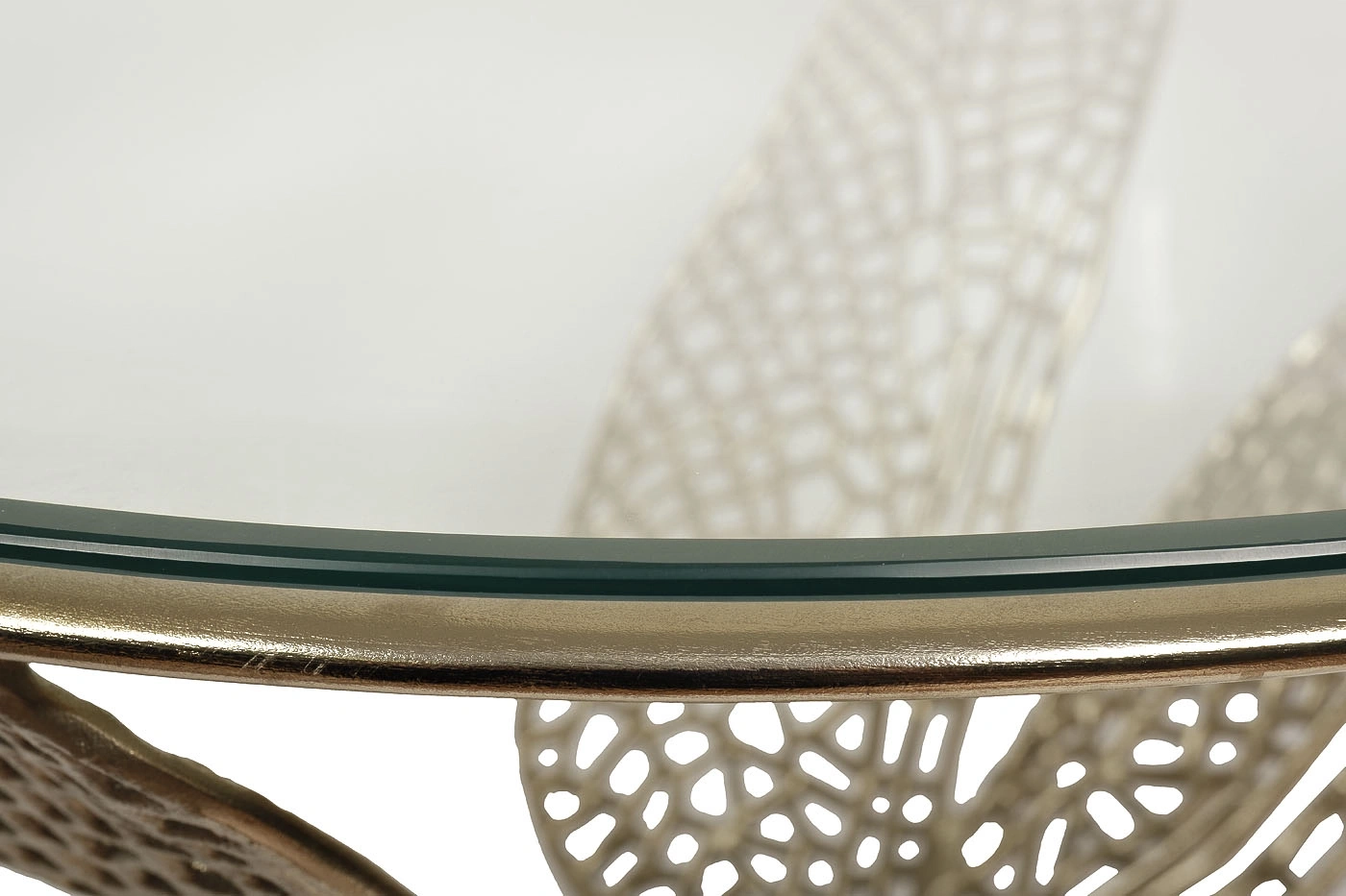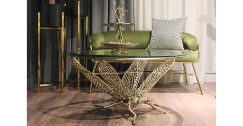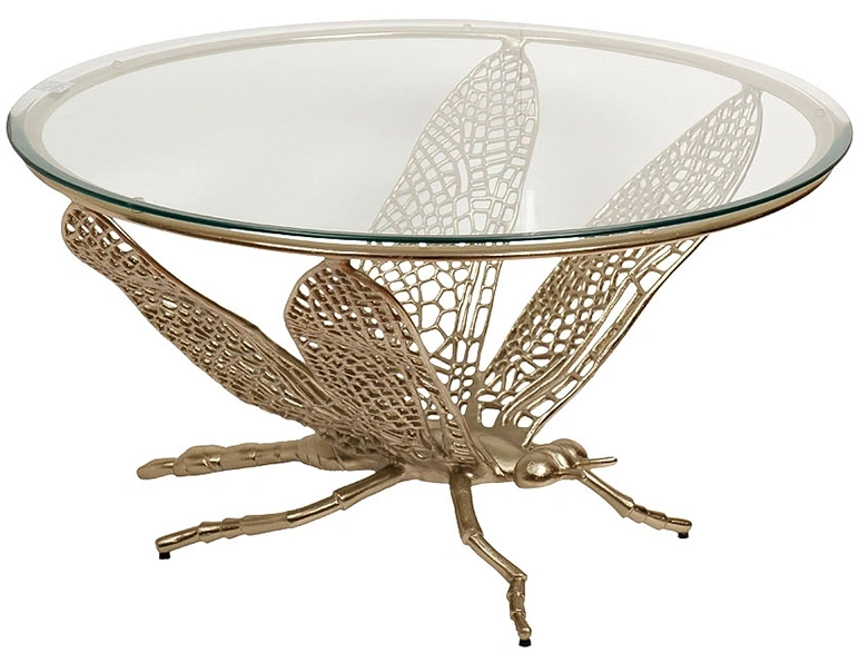 Удивительный дизайнерский стол в стиле ар-деко сделает вашу спальную комнату, гостиную или холл единственными в своем роде! Изящная стрекоза из золотистого металла подпирает крыльями столешницу из прозрачного закаленного стекла. Этот стол ручной работы подойдет артистичным и утонченным натурам, станет невероятным и изысканным подарком дорогому человеку, впишется в интерьер в современном стиле, стиле ар-деко или фьюжн. Толщина столешницы: 10мм