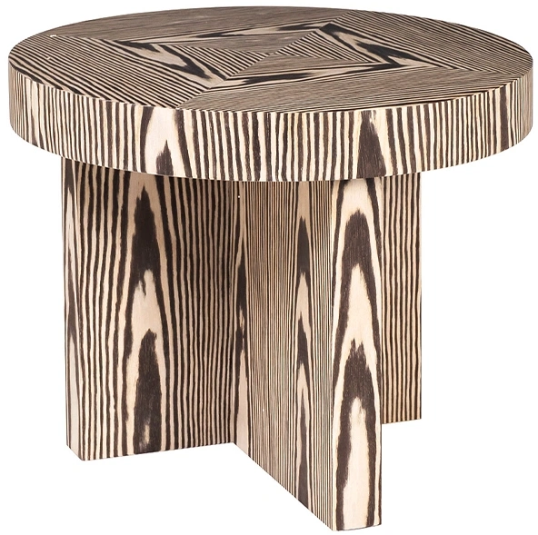 Столик из коллекции Zebrano – объект, который не просто заполняет пространство, а активно формирует его визуальный нарратив. Его поверхность, выполненная из шпона с выразительным полосатым узором, напоминающим рисунок шкуры зебры, является настоящим арт-объектом. Этот столик со шпоном несет в себе смелую графичность, присущую африканским мотивам, переосмысленным через призму современного дизайна. Прямолинейные формы основания, состоящие из нескольких плоскостей, продолжают динамику столешницы, создавая целостную и притягивающую взгляд композицию. Такой предмет идеально подходит для интерьеров, где ценятся индивидуальность, характер и экзотические акценты. Он станет ярким дополнением к гостиной, кабинету или даже спальне, привнося в помещение нотку природной дерзости и артистизма.